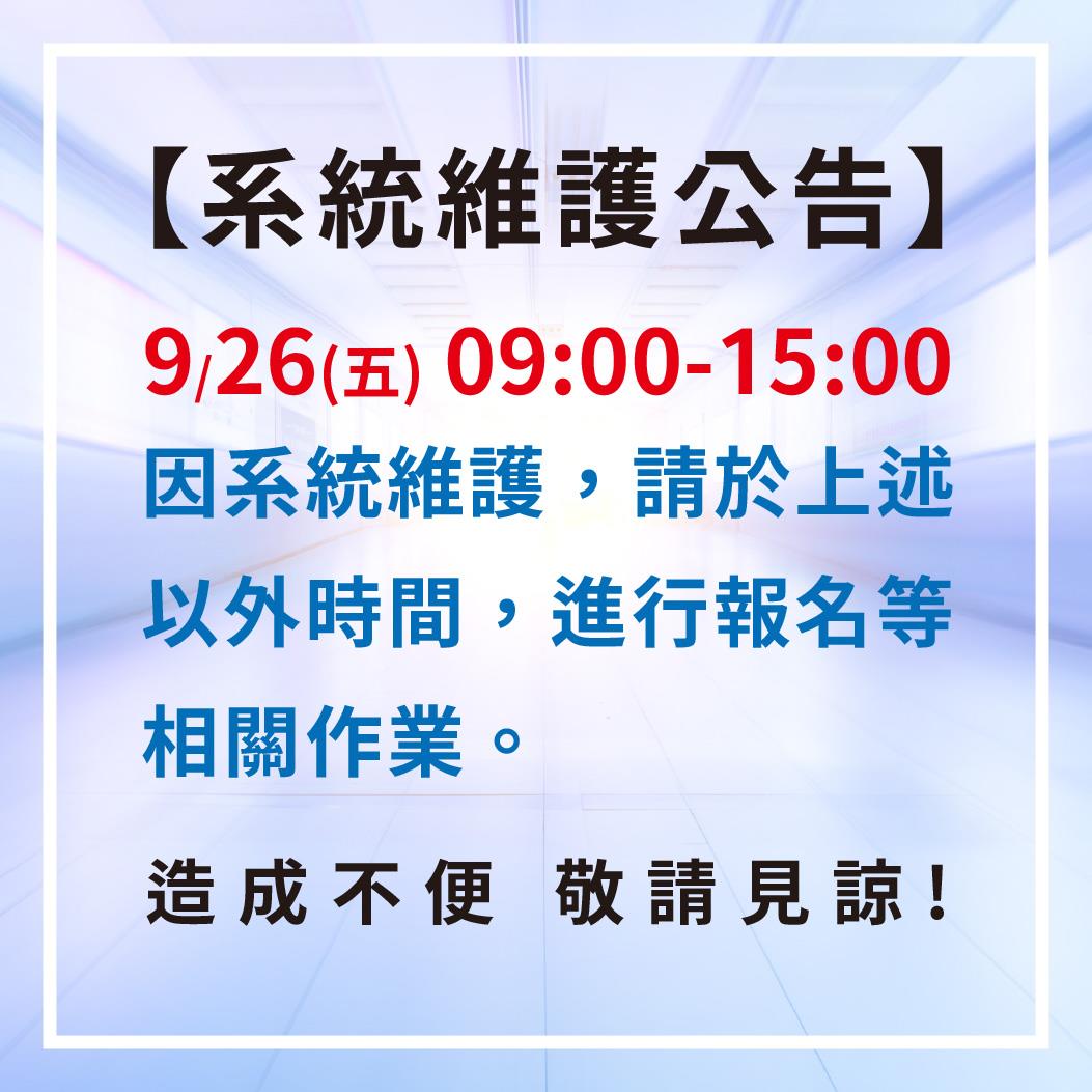 2025/09/23 📢【系統維護公告】9/26 09:00-15:00 進行系統維護作業,TIRT競賽報名截止日至10/5,請選手把握時間報名 9月26日(五)09:00-15:00 進行系統維護作業。屆時網站將暫時無法使用,請有意報名競賽的選手及參加萬人工作坊的民眾, 提前或延後安排報名等相關操作。 造成您的不便,我們深感抱歉,敬請見諒🙏