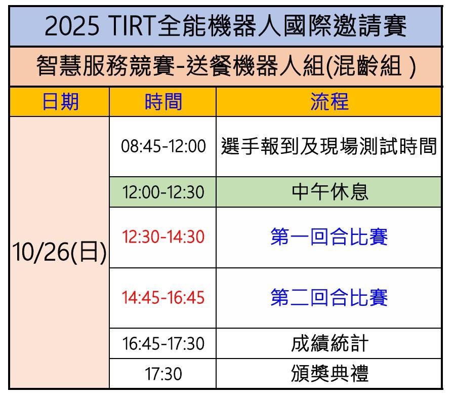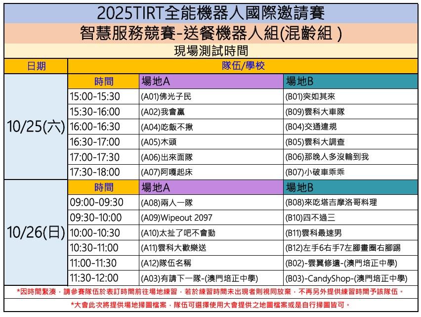 📣2025 TIRT國際賽-雲林科技大學(10/26)-賽程公告